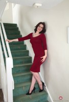 kathleen comes down the stairs looking fabulous in her short little dress. She shoots some nasty fur packed panties shots, then strips it all off. She serves her hot little muff up with a smile. Enjoy!