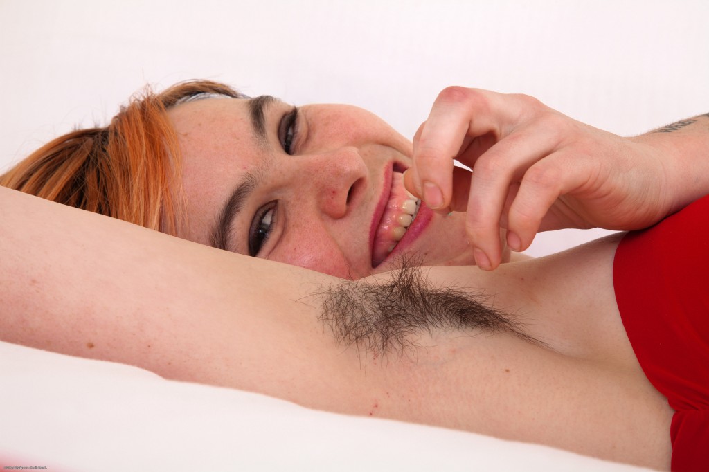 Hairy Roxy doesn't feel like getting out of bed. She reveals her hairy armpits. She shows you her lovely little tits and cute ass. Then she spreads her furry bush wide open, so you can get deep inside. Photos from Sean R.