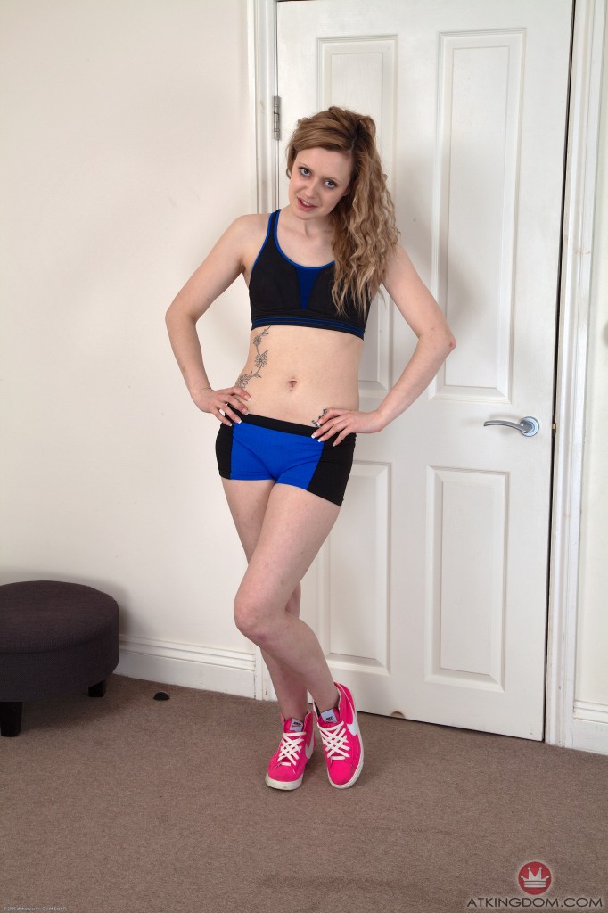 Jessica works her hairy pussy so sweaty. She slips out of her tight workout outfit and does some stretching of her hairy snatch. She shows so much fur and so much pink. Enjoy!
