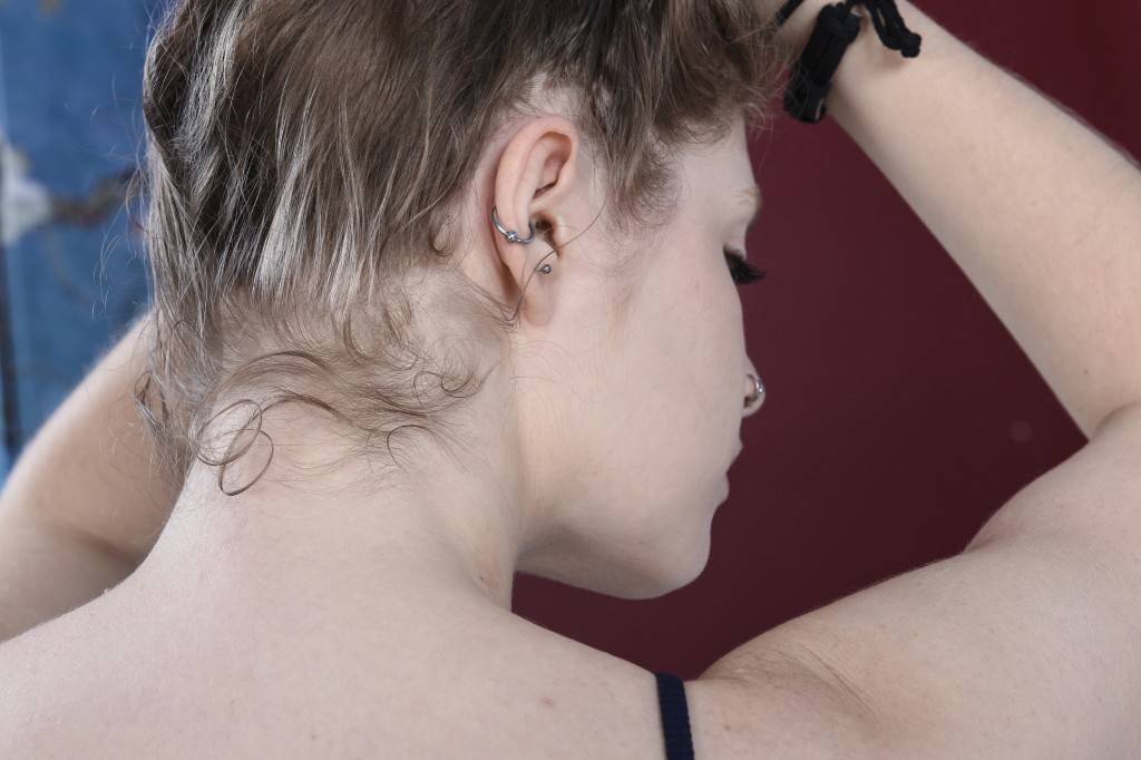 This wonderfully hairy babe loves to tease just a little bit. She pulls up her dress to let you peek at her muff before she spreads her hairy lips.
