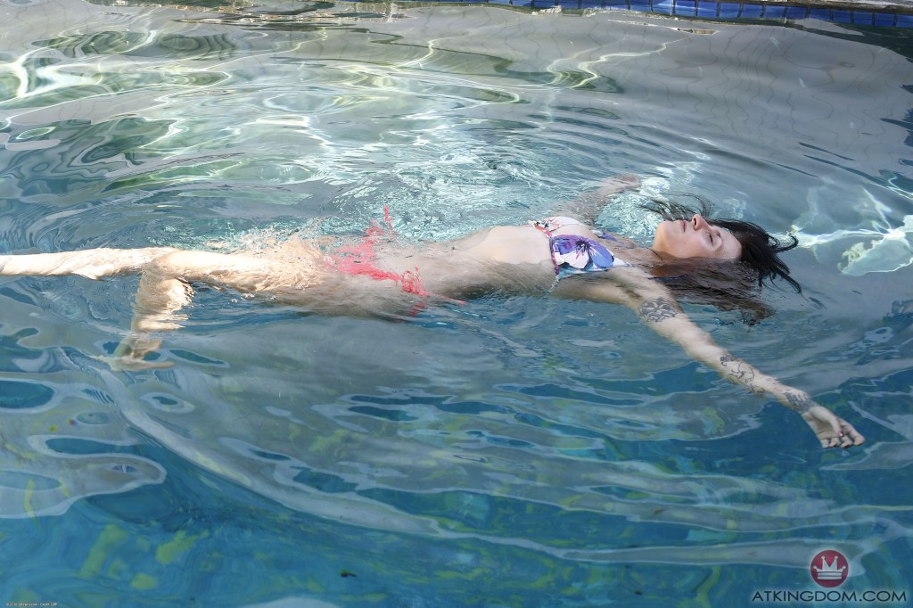 Never pee in the swimming pool! Delta goes for a swim, hey it is hot! She loves splashing around for you, jumps out and strips down for a pee!