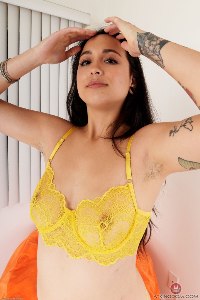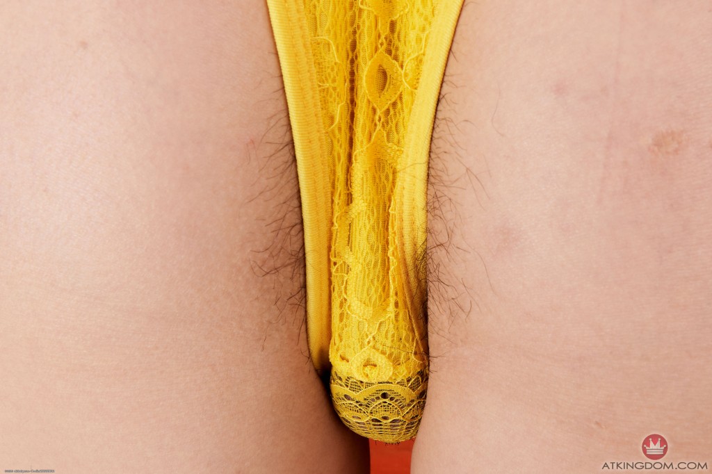 Mi Ha Doan shows off her beautiful Asian hairy pussy. She undresses from her yellow lingerie to show you her nice perky tits and spread that sexy tight ass and pussy. Brought to you by ATKINGDOM.